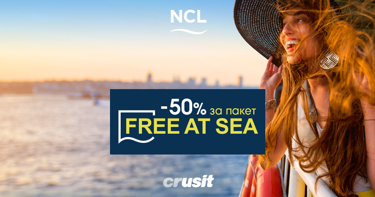 - 50% отстъпка на пакета Free at Sea е приложима само за каюти категория Balcony и Club Balcony Suite. Пълна ифнормация за пакета Free at Sea тук.