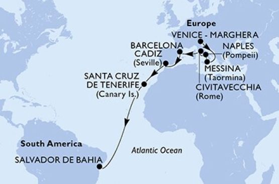 Venice-Marghera,Messina,Naples,Civitavecchia,Barcelona,Cadiz,Santa Cruz de Tenerife,Salvador - UZCM