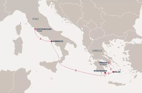 * Цените включват всички такси, премиум all inclusive, високоскоростен интернет на борда и някои трансфери- Маршрут на круиза: Рим (порт Чивитавекия) - Соренто - В открито море - Монемвасия - Милос - Атина (Пирея)
