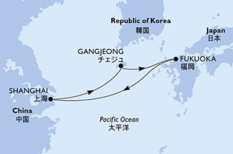 *Към цената е дължима и допълнителна такса обслужване на кораба в размер на 0 € / 0 лв.- Маршрут на круиза: Шанхай - о-в Джеджу - Фукуока - В открито море - Шанхай