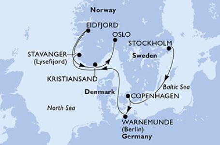 *Към цената е дължима и допълнителна такса обслужване на кораба в размер на 0 € / 0 лв.- Маршрут на круиза: Варнемюнде - В открито море - Кристиансанд - Айдфьор - Линдал - Осло - Копенхаген - Варнемюнде