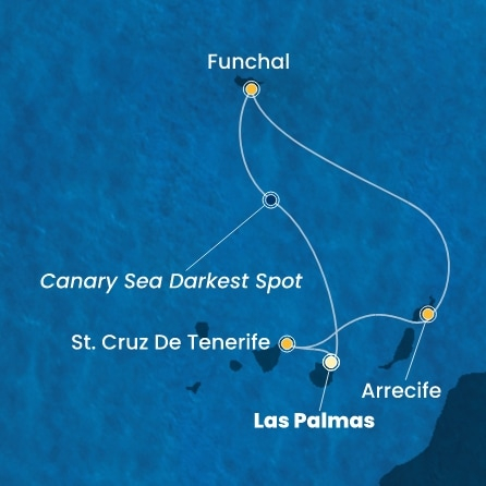 *Към цената е дължима и допълнителна такса обслужване на кораба в размер на 77 € / 150.60 лв.- Маршрут на круиза: Лас Палмас (Гран Канария) - В открито море - Тенерифе (Санта Крус) - Тенерифе (Санта Крус) - Лансароте (Аресифе) - Лансароте (Аресифе) - Мадейра (Фуншал) - Canary Sea Darkest Spot - Canary Sea Darkest Spot - Лас Палмас (Гран Канария)