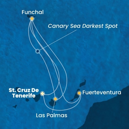 *Към цената е дължима и допълнителна такса обслужване на кораба в размер на 77 € / 150.60 лв.- Маршрут на круиза: Тенерифе (Санта Крус) - Тенерифе (Санта Крус) - Фуертевентура (Пуерто дел Росарио) - В открито море - Мадейра (Фуншал) - Canary Sea Darkest Spot - Canary Sea Darkest Spot - Лас Палмас (Гран Канария) - Мадейра (Фуншал) - Тенерифе (Санта Крус)