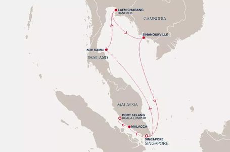 - Маршрут на круиза: Сингапур - В открито море - Ко Самуи - Лаем Чабанг - Лаем Чабанг - Сихануквил - В открито море - Сингапур - Малака - Порт Кланг (Куала Лумпур)