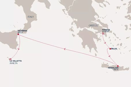 * Цените включват всички такси, премиум all inclusive, високоскоростен интернет на борда и някои трансфери- Маршрут на круиза: Атина (Пирея) - Милос - Ираклион (Крит) - В открито море - Джардини Наксос - Валета