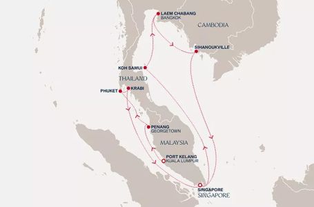 - Маршрут на круиза: Порт Кланг (Куала Лумпур) - Пенанг - Пукет (Тайланд) - Краби - В открито море - Сингапур - В открито море - Ко Самуи - Лаем Чабанг - Лаем Чабанг - Сихануквил - В открито море - Сингапур