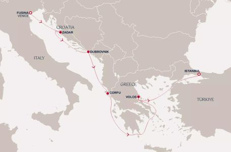 * Цените включват всички такси, премиум all inclusive, високоскоростен интернет на борда и някои трансфери- Маршрут на круиза: Фузина (Венеция) - Задар - Дубровник - Корфу - В открито море - Волос (Метеора) - В открито море - Истанбул