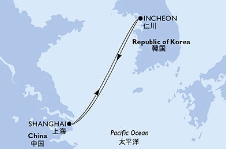 *Към цената е дължима и допълнителна такса обслужване на кораба в размер на 0 € / 0 лв.- Маршрут на круиза: Шанхай - В открито море - Инчон (Сеул) - В открито море - Шанхай