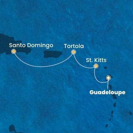 *Към цената е дължима и допълнителна такса обслужване на кораба в размер на 33 € / 64.54 лв.- Маршрут на круиза: Поант-а-Питр - Бастер - Роудтаун, о-в Тортола - Санто Доминго