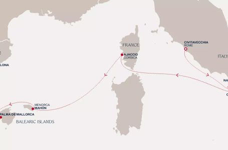 * Цените включват всички такси, премиум all inclusive, високоскоростен интернет на борда и някои трансфери- Маршрут на круиза: Рим (порт Чивитавекия) - Неапол - Капри - Капри - Ажаксьо (Аячо) - Менорка (Маон) - Палма де Майорка - Барселона