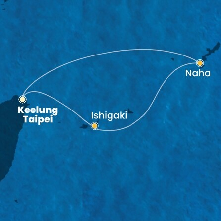 *Към цената е дължима и допълнителна такса обслужване на кораба в размер на 33 € / 64.54 лв.- Маршрут на круиза: Кеелунг (Тайван) - Наха (Япония) - Наха (Япония) - Кеелунг (Тайван)