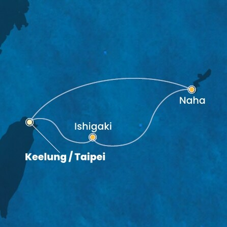 *Към цената е дължима и допълнителна такса обслужване на кораба в размер на 0 € / 0 лв.- Маршрут на круиза: Кеелунг (Тайван) - Наха (Япония) - Наха (Япония) - Окинава (Исигаки, Япония) - Кеелунг (Тайван)