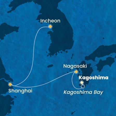 *Към цената е дължима и допълнителна такса обслужване на кораба в размер на 66 € / 129.08 лв.- Маршрут на круиза: Кагошима - Кагошима - Нагасаки - В открито море - Шанхай - Шанхай - В открито море - Инчон (Сеул)